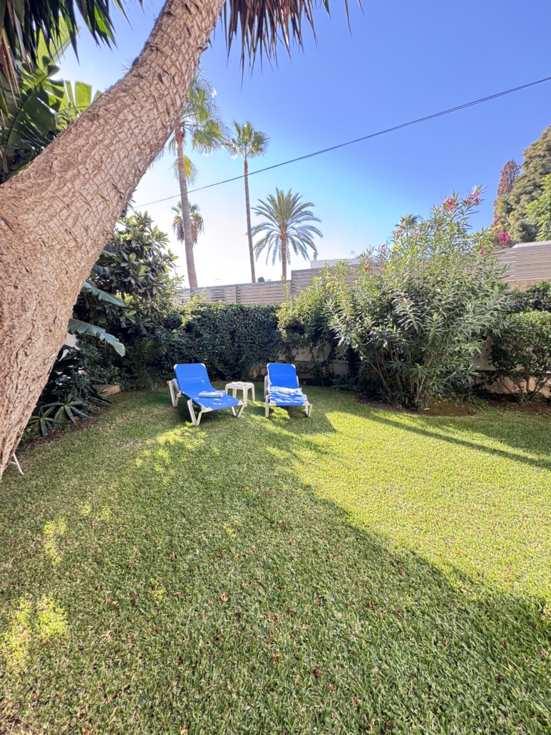 Die Ferienwohnung „Sevilla“ bietet Ihnen einen idyllischen Palmengarten und reichlich Platz zum Erholen.